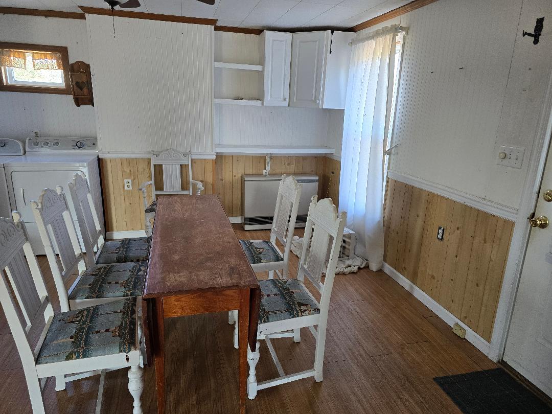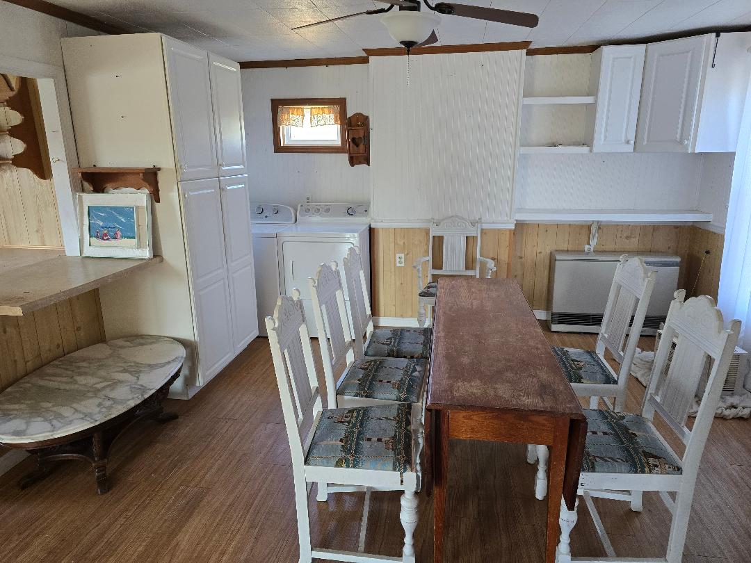 S#26 County Central Bungalow, all spruced up with 2 new bathrooms, gleaming floors, 2 bedrooms, and one ensuite. New windows and new electric heat, too. All freshly painted with new floors. The enclosed front porch spans the front elevation of the home, which can easily be a good spot for an extra guest room or office. Eat-in kitchen and mud/utility room. All on one level with a massive attic. Full acre in a quiet neighborhood. $168,000.