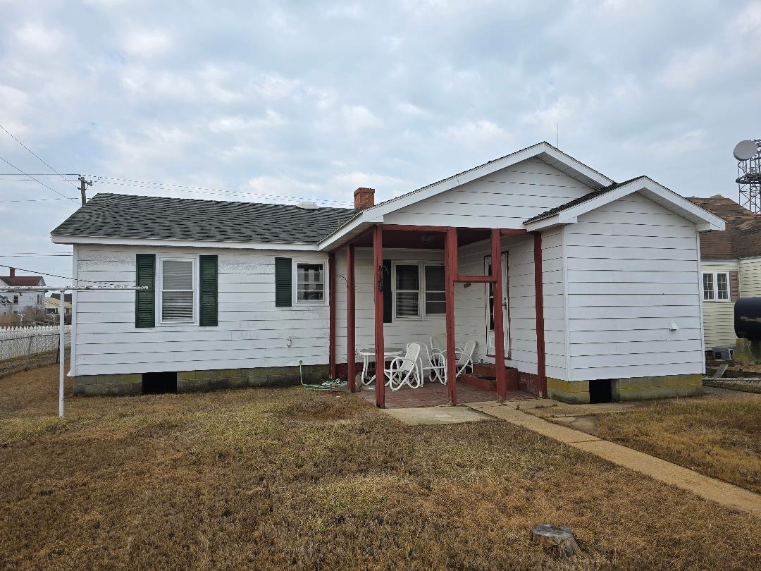 D#7 Story goes a bardge moved this home to the lands known as the Uppers, an island near the port in Tangier, by the Crockett family. In 2018, the present owners enjoyed life on Tangier and had a successful gift shop from the spacious enclosed front porch. 2068 sq' with 4 bedrooms, an eat-in kitchen, 1 bath, two enclosed porches and a massive attic. Sturdy home, yet the gardens, paint, and some of the plaster walls need to be redone; additionally, a properly functioning heat and air system. The electric company must inspect and permit required before electric can be turned on, and several of the plumbing pipes repaired. While Tangier is a moderately busy area, it seems the majority of tourists do pass by. $42,000. SOLD